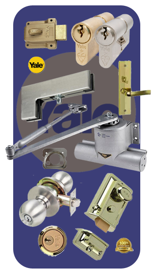 Yale light commercial range include patch fittings, glass door handles, glass door hinges, glass door knobs, glass door connectors and door exit devices