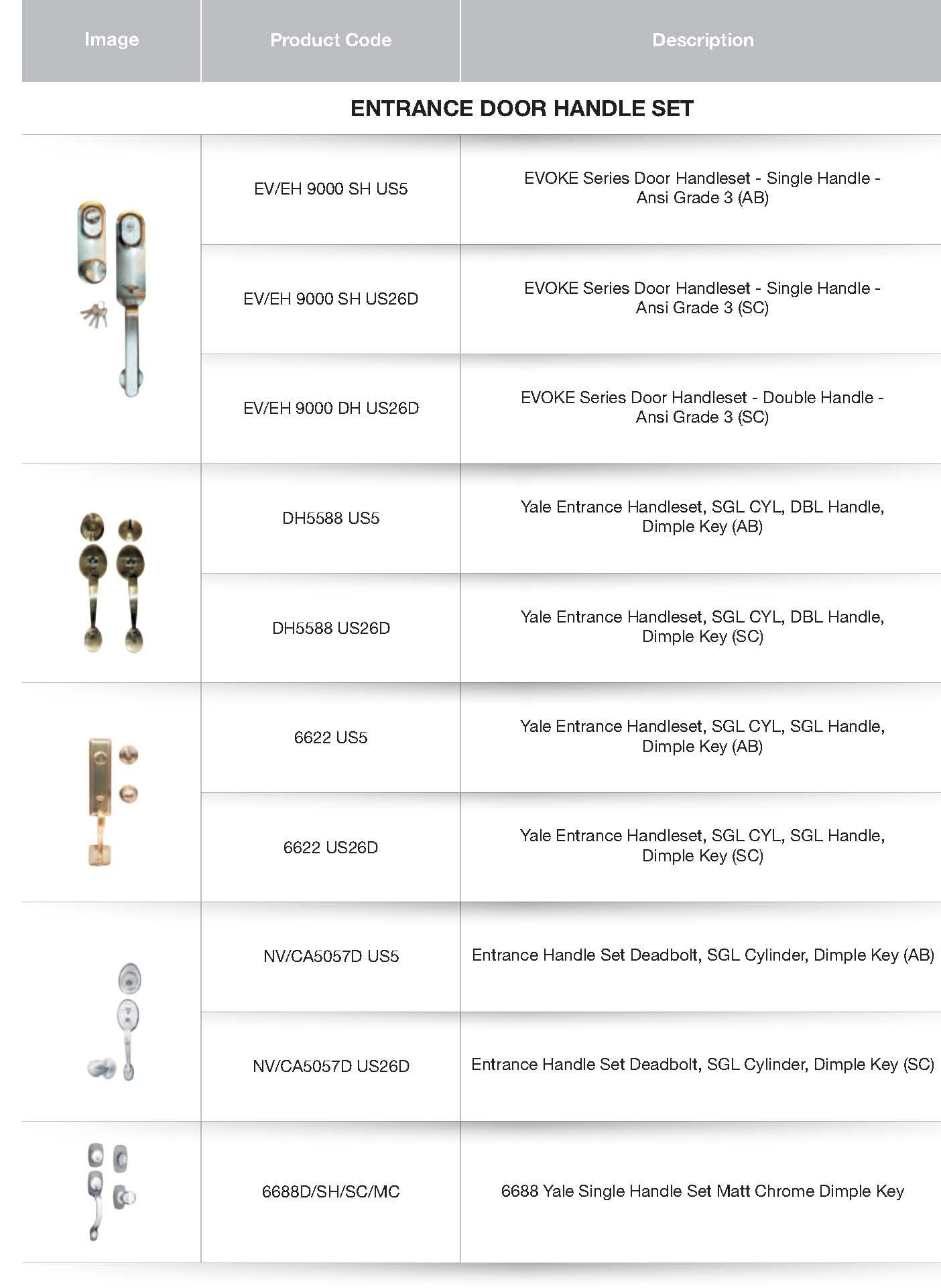 ENTRANCE DOOR HANDLE SETS